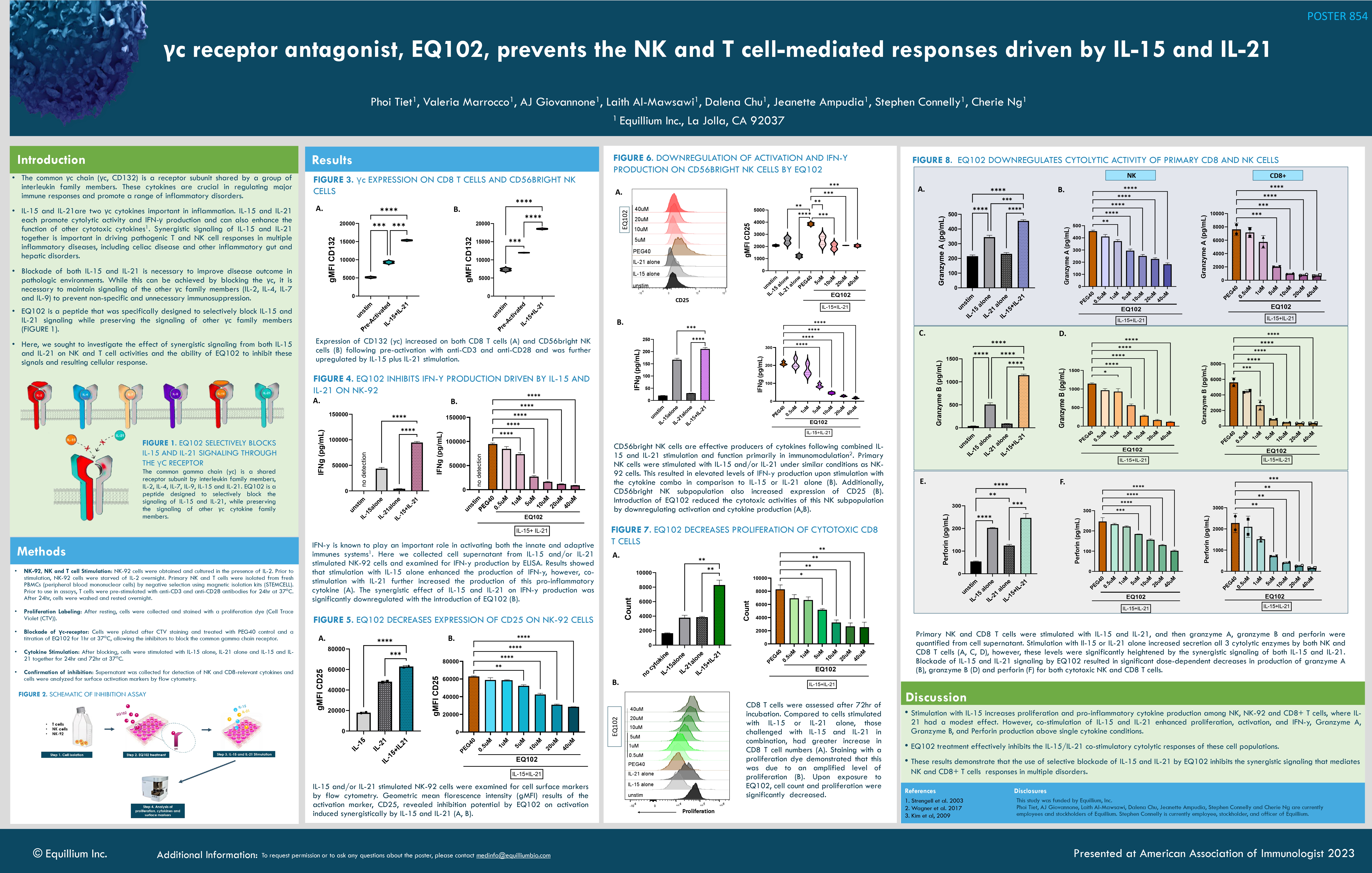 γc receptor antagonist, EQ102, prevents the NK and T cell-mediated responses driven by IL-15 and IL-21<span>Phoi Tiet, et. al.</span><span>American Association of Immunology</span><span>2023</span>
