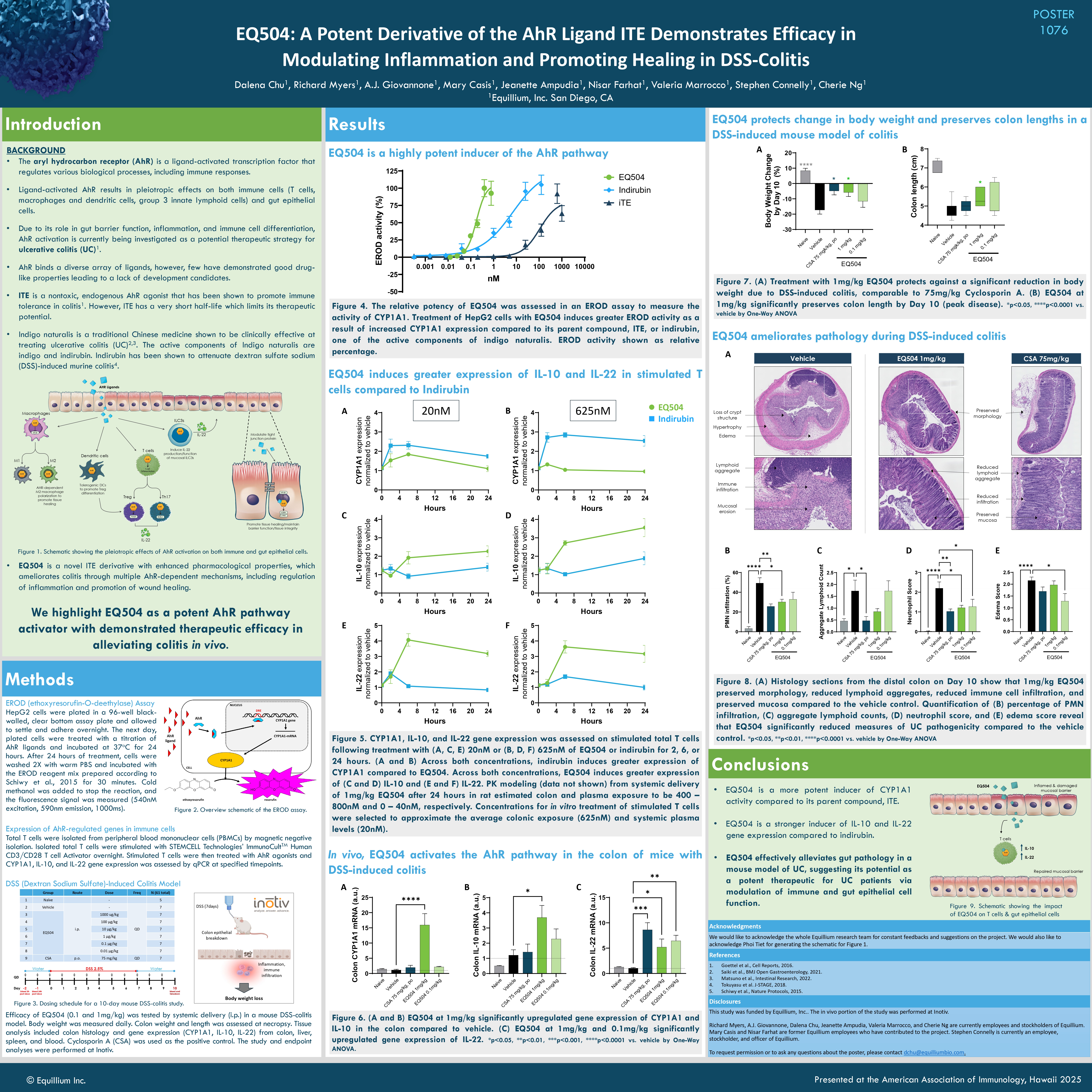 EQ504: A Potent Derivative of the AhR Ligand ITE Demonstrates Efficacy in Modulating Inflammation and Promoting Healing in DSS-Colitis<span> Dalena Chu, et. al.</span><span> American Association for Immunologists Conference </span><span>2025</span>